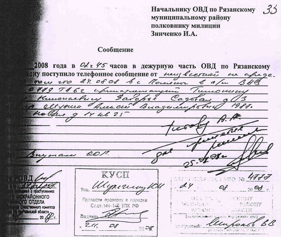 Эта история тянется уже четыре года. В ночь с 23 на 24 августа 2008 года на одной из улиц в селе Заборье Рязанского района Рязанской области был обнаружен 21-летний Алексей Мухин. У парня были тяжкие телесные повреждения, он умер по дороге в больницу. По горячим следам следствие восстановило картину произошедшего. В тот злополучный вечер у местного ДК произошла стычка, одним из участников которой стал Мухин. В итоге нетрезвый молодой человек оказался под колесами КАМАЗа: его переехала многотонная машина. В пользу этой версии говорили все документы, собранные сразу после ЧП. Так, например, в материалах уголовного дела есть справка из УВД Рязанского района на имя следователя, где говорится, что ночью 24 августа 2008 года дежурный милиционер принял сообщение, о том, что автомашина КАМАЗ наехала на пешехода и скрылась. Эта информация поступила сначала от диспетчера "скорой", выехавшей по вызову, а затем от неизвестного очевидца, позвонившего с места с мобильного телефона (номер был установлен). Вскоре по факту смерти Алексея Мухина возбудили уголовное дело. Однако в числе обвиняемых не оказалось водителя КАМАЗа – Алексея Понера. Больше того, причиной смерти было названо не ДТП, а то, что Мухина якобы избили палками и битами. Одним из троих подозреваемых оказался Владимир Данченко. Как утверждают родные Владимира, уголовное дело было сфабриковано, чтобы увести от ответственности водителя грузовика. По их словам, родители парня – достаточно состоятельные по местным меркам люди, и не исключено, что они могли повлиять на следствие. В этом уголовном деле, как в сотнях ему подобных, очень много "нестыковок", на которые следователи, прокуратура и суд почему-то закрывают глаза. Так, в ходе следствия показания давали очевидцы драки у ДК. В основном, это молодые девушки, которые до ЧП не были знакомы с Данченко. Тем не менее, все они, повторяя показания друг друга, утверждают, что в темноте смогли разглядеть, что именно Владимир наносил удары битой или штакетником от забора. Никаких следственных экспериментов по этому поводу не проводилось. Даже если предположить, что свидетельницы действительно рассмотрели троих избивавших и смогли их идентифицировать, то версия о битах не подтверждается имеющимися в материалах дела заключениями экспертов. Они утверждают, что на теле Мухина не было следов, характерных для ударов битами или палками. В исследовании, проведенном специалистами Санкт-Петербургского Бюро судебно-медицинской экспертизы, указано, что смерть Алексея Мухина была вызвана травмой печени, которая была буквально раздавлена. Такие повреждения, как утверждают эксперты, наиболее характерны для переезда колесом транспортного средства. Несмотря на огромное количество противоречий, не устраненных в ходе следствия, дело было передано в суд. На процессе некоторые свидетели начали отказываться от показаний, заявив о давлении со стороны полицейских, однако их слова не были услышаны. Как утверждает отец Владимира – Александр Данченко – "на последнем заседании стало понятно, что будет вынесен обвинительный приговор в виде лишения свободы". На следующее заседание Владимир просто не пришел, поскольку в его адрес поступили угрозы о физической расправе в местах лишения свободы. Сейчас он вынужден скрываться. Ни отец, ни жена о его местонахождении ниче